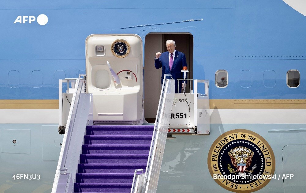وقبل وصوله، تصاعد الجدل حول خطط الرئيس لقبول طائرة بوينغ فاخرة من قطر لاستخدامها كطائرة رئاسية.