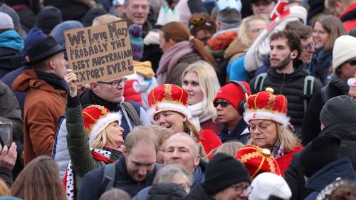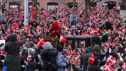 على الرغم من اقتراب درجات الحرارة من التجمد يوم الأحد، تجمع آلاف الأشخاص من جميع أنحاء الدنمارك خارج قصر كريستيانسبورج لمشاهدة الخلافة.