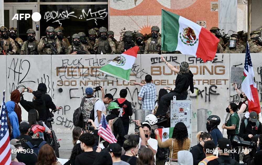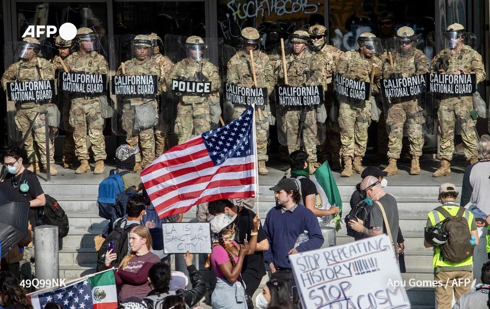ومن دون أن يولي أي اعتبار لاعتراضات حاكم كاليفورنيا وعمدة لوس أنجلوس، قام ترامب بفدرلة الحرس الوطني للولاية، ثم نشر 700 من مشاة البحرية لمواجهة ما أسماه “تمرداً داخلياً”.