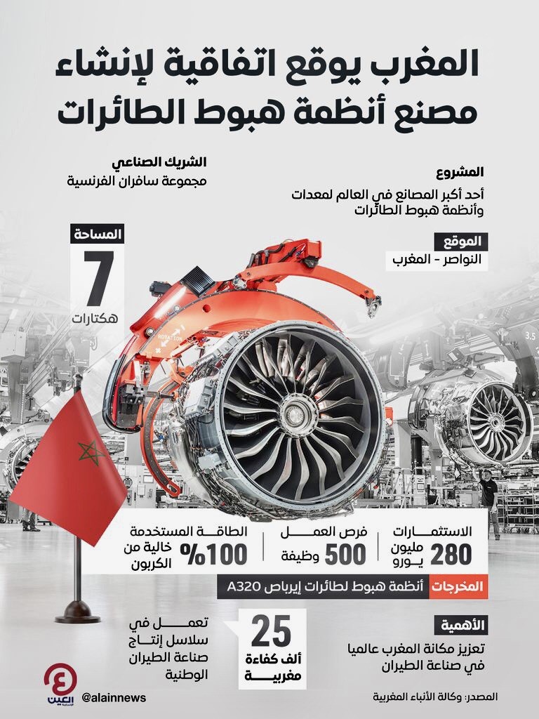 العين – وقع المغرب اتفاقية مع مجموعة “سافران” الفرنسية لإنشاء مصنع متطور لإنتاج أنظمة هبوط الطائرات بالنواصر، معززا مكانته العالمية في صناعة الطيران، باستخدام تكنولوجيا دقيقة واستثمارات ضخمة.