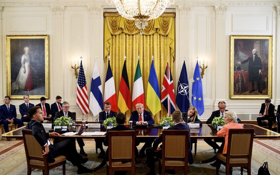 وفي مشهد دبلوماسي غير مسبوق، وصل الأمين العام لحلف شمال الأطلسي (ناتو) مارك روته، ورئيسة المفوضية الأوروبية أورسولا فون دير لايين، ورئيس الوزراء البريطاني كير ستارمر، ورئيسة الوزراء الإيطالية جورجيا ميلوني، والرئيس الفنلندي ألكسندر ستوب، وفريدريش ميرتس، وإيمانويل ماكرون، بشكل منفصل إلى البيت الأبيض لدعم فولوديمير زيلينسكي.