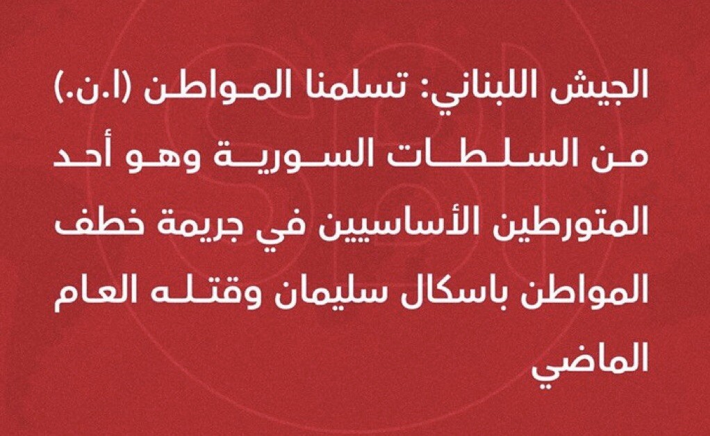 سلمت السلطات السورية “أحمد نون” الرأس المدبر لعمليّة اغتيال المسؤول في حزب القوات اللبنانية “باسكال سليمان” إلى الجيش اللبناني.