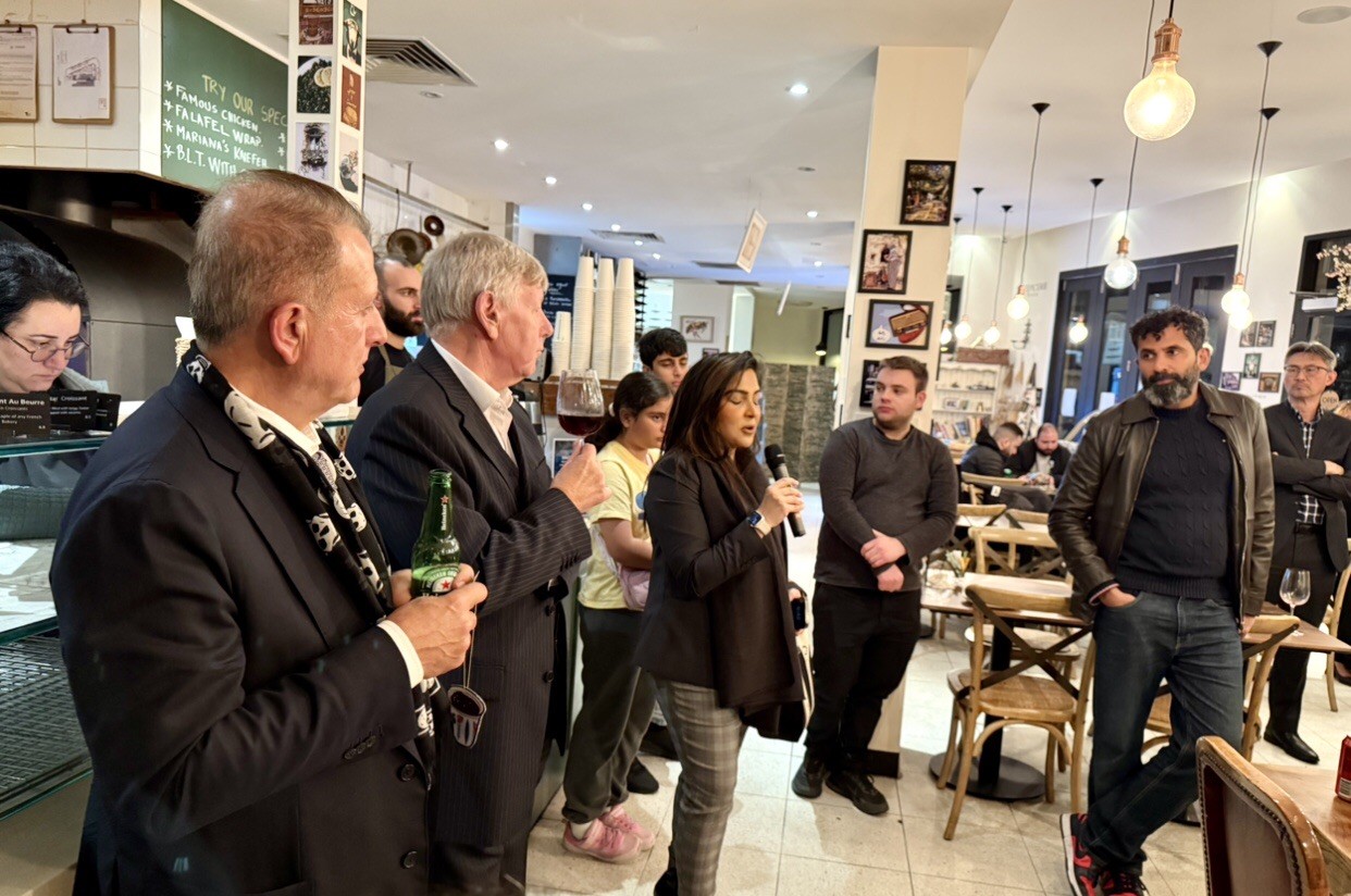 وتشير ميريانا أثناء ليلة ماطرة كرستها غرفة التجارة والصناعة الأسترالية العربية في مقهى “سلام بيكري” لتعريف الشخصيات العامة بالمقهى وتبادل الأحاديث، في حديث سريع مع جريدة “الناس نيوز” ، إلى أهمية ما تتلقاه من ردود أفعال إيجابية من الزبائن، فجميعهم يشعرون أنهم يعيشون لحظات خاصة وجميلة، المكان كله جميل، اللوحات الإضاءة، المعاملة والطعام والقهوة والابتسامة الدائمة، وخشب الكراسي والطاولات نوعيته قريبة للروح يشعرك أنك على على علاقة معه طوال الوقت، وكأن المقهى خاص بأصحاب المزاج والمثقفين وصناع الفن والإبداع، أو استراحة خاطفة لأصحاب الياقات البيضاء.