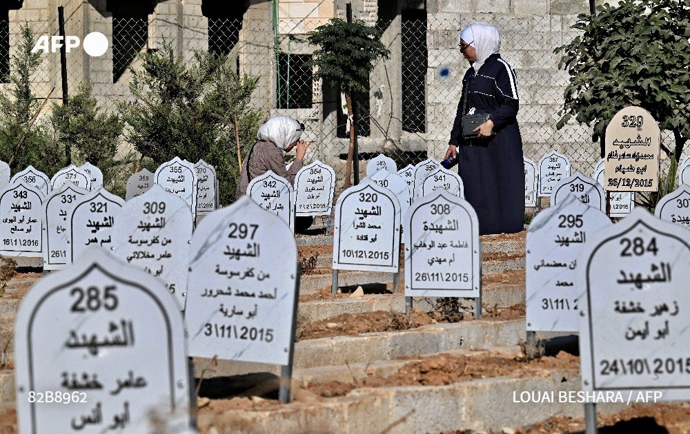 في “مقبرة الشهداء” التي استُحدثت خلال الحرب، ترقد جثامين 421 شخصا من المدينة موثقين بالاسماء، قتلوا بين عامي 2012 و2016. وتضمّ المقبرة كذلك مدفنا جماعيا فيه جثث مجهولة الهوية دفنت في جزء كبير منها بعد “مجزرة” داريا.