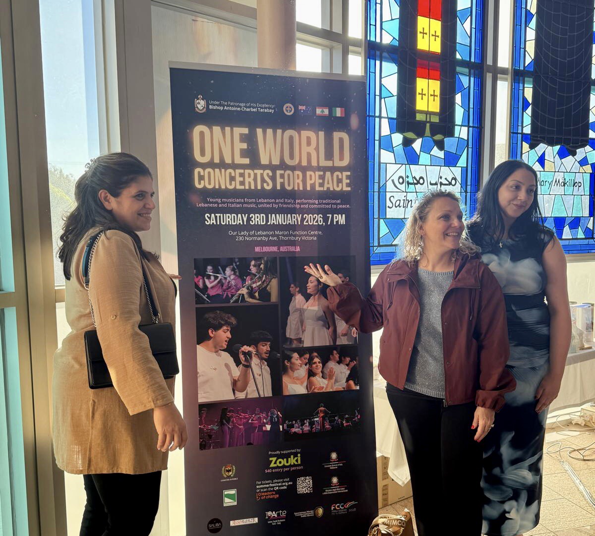 وبعد احتفال ترحيبي بعشرات الشابات والشباب ( 10 من لبنان ، 16 من إيطاليا ) في كنيسة سيدة لبنان حيث شارك رجل الأعمال اللبناني الأسترالي جوزيف الزوقي بدعم زيارة بوفد ” عالم واحد ” تقوده لَيَّا عاقوري التي ساهمت في تأسيس “جمعية كورال ” في العام 2007 .