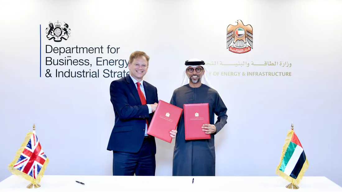 وبحسب “وام” جاء توقيع مذكرة التفاهم خلال زيارة وزير الأعمال والطاقة البريطاني جرانت شابس إلى أبوظبي.