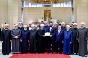 دمشق – بيروت – الناس نيوز :: تقلد الرئيس السوري أحمد الشرع من مفتي لبنان الشيخ عبد اللطيف دريان وسام دار الفتوى المذهَّب، وذلك خلال استقباله...
