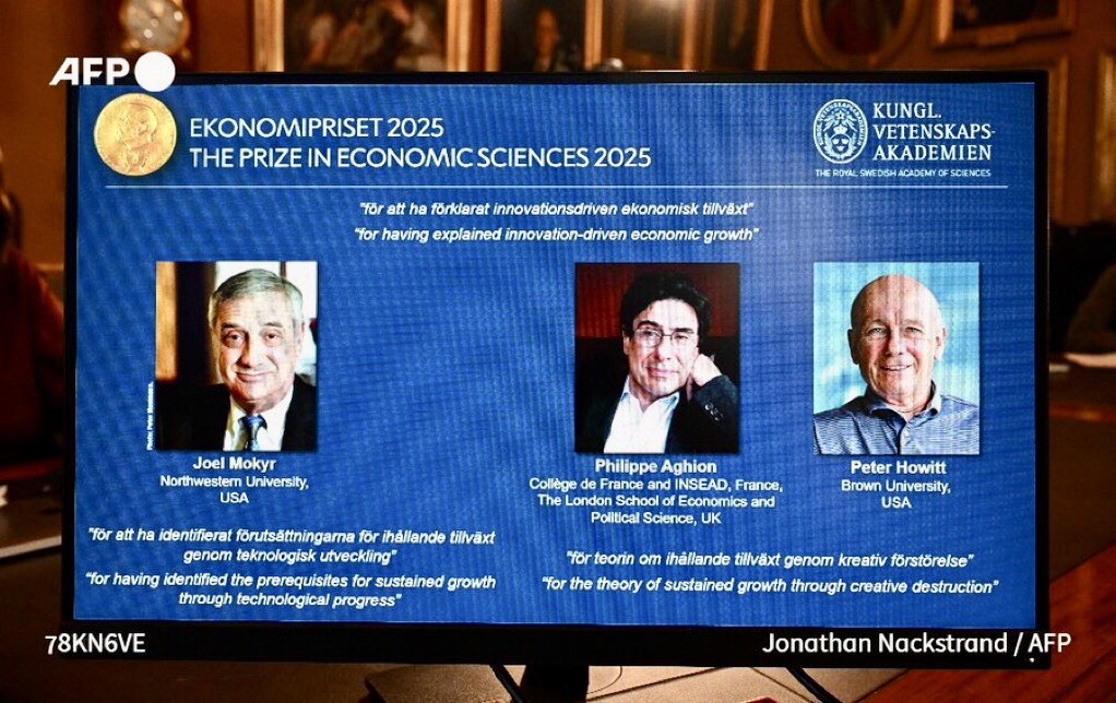 مُنِحت جائزة نوبل الاقتصاد الاثنين للاميركي-الإسرائيلي جويل موكير والفرنسي فيليب أغيون والكندي بيتر هويت عن دراساتهم المتعلقة بتأثير التكنولوجيا على النمو الاقتصادي.